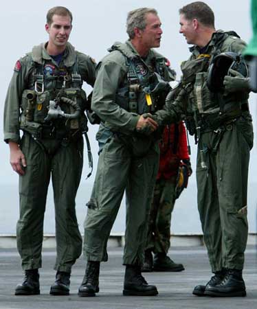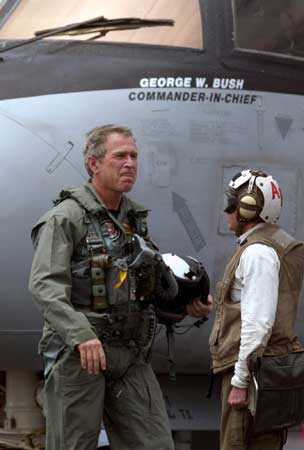 暗藏玄機之四,布什政府未來行動之四:布什乘戰(zhàn)機上航母做演講這一系列動作顯然還有明顯的國內(nèi)政治意圖。美國《紐約時報》聲稱,讓布什上航母演講除了是撈最大程序的政治影響之外,沒有其它的解釋。布什總統(tǒng)被充滿笑臉的美國大兵包圍的情景顯然是2004年競選連任最佳的布景!(聞新芳)