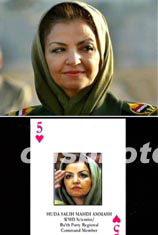 中新社紐約五月五日電(記者 陳建)伊拉克“炭疽夫人”胡達·阿馬什博士,端莊美麗得有些出人意料。美方官員說,五月四日,這位女科學(xué)家向美軍投降了。她是美軍發(fā)布的五十五名通緝要犯撲克牌中唯一的女人。在紅心五撲克牌上,五十歲的“炭疽夫人”頭戴豆綠色頭巾,威嚴(yán)地敬著軍禮。