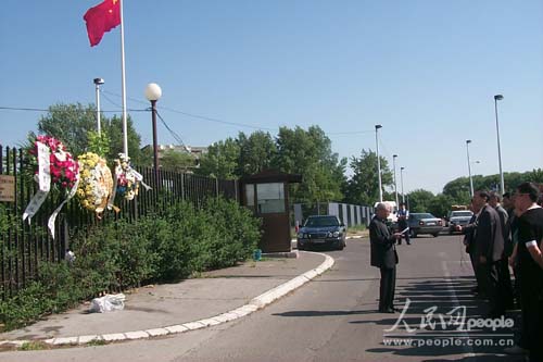 中新網(wǎng)5月7日電 人民網(wǎng)貝爾格萊德消息:中國(guó)駐塞爾維亞和黑山大使館全體工作人員、中國(guó)駐塞黑全體新聞工作者和旅南華人華僑代表今天上午在中國(guó)駐南大使館館舍廢墟前集會(huì),沉痛哀悼在1999年美國(guó)轟炸中犧牲的3名中國(guó)烈士。