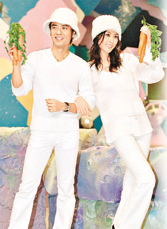 中新網(wǎng)5月13日電 香港藝人陳慧琳(Kelly)前晚在無(wú)線《勁歌金曲》錄像中,自選一套白衫白褲扮阿倫,與李克勤合唱《左麟右李》,克勤更首次在臺(tái)上翻跟斗,搞到頭暈。