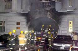 中新網(wǎng)5月15日電 據(jù)“中央社”報道,今天晚上約七時三十分左右,一輛載有七桶汽油的卡車沖撞臺灣“交通部”大門并 引起大火,卡車司機當場死亡,“交通部”人員全部平安逃出。