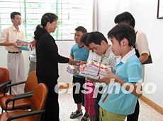 五月十八日是中國助殘日,廣東汕頭市殘聯(lián)及澄海區(qū)負責人為殘疾學生送去助學金和學習書籍。作者:曾干普