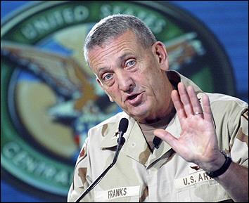 現(xiàn)年57歲的弗蘭克斯將軍是美軍中央司令部司令,他在2001年指揮美國和盟國部隊推翻阿富汗的塔利班政權(quán),今年4月又率領(lǐng)聯(lián)軍推翻伊拉克薩達姆的政權(quán)。