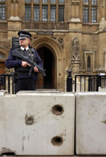 中新網(wǎng)5月24日電 據(jù)英國(guó)《泰晤士報(bào)》報(bào)道,為了避免倫敦市尤其是英國(guó)國(guó)會(huì)大廈遭受恐怖分子的襲擊,倫敦市日前全面加強(qiáng)了警戒措施。一夜之間,英國(guó)國(guó)會(huì)大廈的門(mén)口道路已經(jīng)豎起了一道水泥城墻。倫敦市警方也全面提高了整個(gè)倫敦市的安全戒備級(jí)別。