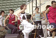 歌星梅艷芳5月23日出席香港大球場(chǎng)茁壯行動(dòng)「1:99音樂會(huì)」彩排,梅艷芳身兼「1:99音樂會(huì)」總監(jiān)在炎熱的天氣下,落力督導(dǎo)彩排。中新社傳真 鄧慶樂 攝