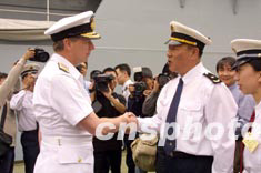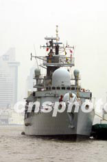 中新社上海五月二十四日電 英國皇家海軍“利物浦號”驅(qū)逐艦在英國海軍司令大衛(wèi)尼爾森的帶領下,今天首次訪問上海。