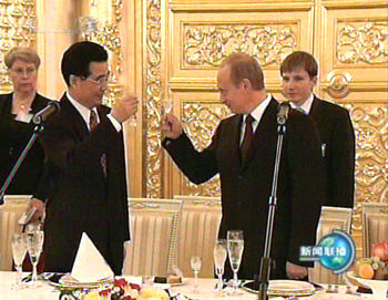普京指出,胡錦濤擔(dān)任中國國家主席后首次出訪的第一站就是俄羅斯,再次體現(xiàn)出中方領(lǐng)導(dǎo)人對發(fā)展兩國關(guān)系的重視。剛剛進行的會談內(nèi)容十分豐富且富有成效,對雙方都有益處。