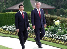 布什邀請(qǐng)胡錦濤主席方便的時(shí)候訪問(wèn)美國(guó)。胡錦濤感謝布什的邀請(qǐng),表示愿在適當(dāng)?shù)臅r(shí)候訪美并邀請(qǐng)布什再次訪問(wèn)中國(guó)。他說(shuō),中方歡迎美國(guó)副總統(tǒng)切尼今年晚些時(shí)候訪華。布什表示他本人愿再次訪問(wèn)中國(guó),并說(shuō)切尼期待著對(duì)中國(guó)的訪問(wèn)。