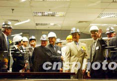 香港九廣鐵路公司主席田北辰,6月2日帶領(lǐng)嘉賓參觀竣工的南昌站大堂控制室,該站是地鐵網(wǎng)絡(luò)的一個(gè)全新車站,將于2003年秋季投入服務(wù)。
