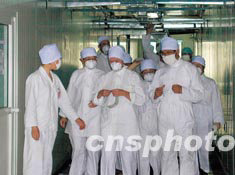 小湯山醫(yī)院人員為世界衛(wèi)生組織視察組專家戴好口罩