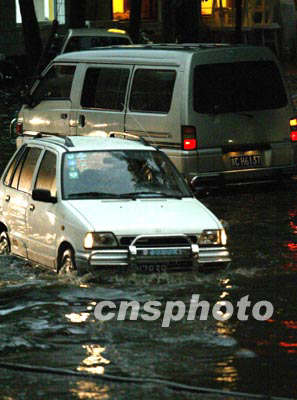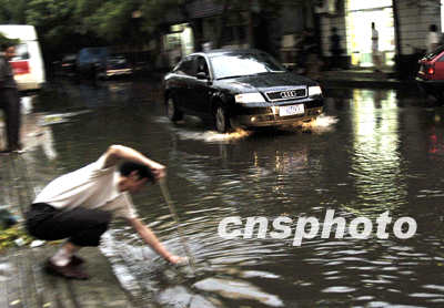 受蒙古南下冷空氣和北上暖濕氣流的共同作用,今天上午還晴空萬里的北京城突然迎來了一場大暴雨,不一會兒功夫整座城市便被如注的暴雨吞沒。許多下班的人剛走幾步就已渾身濕透。環(huán)路上馳過的汽車?yán)鹆碎L長的水花,更有些地方的瞬間積水淹至小轎車的車燈,令不少司機(jī)不得不脫去鞋襪,挽起褲腿,推車前行。這也是北京五月份以來的第九次雷陣雨天氣。氣象專家說,今天部分地區(qū)還刮起了六七級的大風(fēng),一些郊區(qū)縣還下起了冰雹。