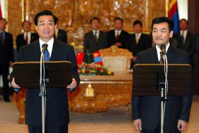 胡錦濤說,為在新世紀使中蒙關(guān)系邁上新臺階,中方建議: