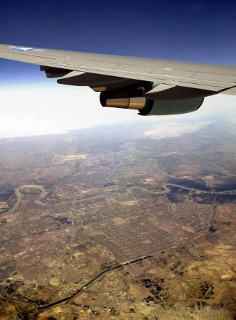 中新網(wǎng)6月6日電 美國總統(tǒng)布什月5日在搭乘專機“空軍一號”從卡塔爾返回華盛頓的途中,飛越伊拉克首都巴格達上空。
