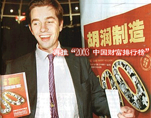 胡潤(Rrpert Hoogewerf),英國人,今年33歲,曾任美國著名的財富雜志《福布斯》(Forbes)的中國地區(qū)首席調(diào)研員。
