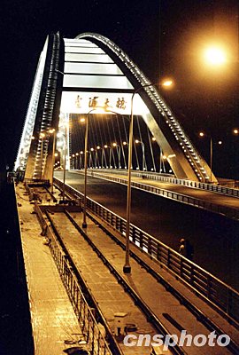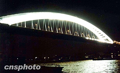 2003年6月10日晚7時(shí),“世界第一鋼拱橋”——上海盧浦大橋迎來(lái)又一個(gè)激動(dòng)時(shí)刻。上海電力安裝第二工程公司的技術(shù)人員在浦西、浦東兩個(gè)配電室同時(shí)撳下按鈕,盧浦大橋全線燈光次第亮起,將大橋照耀得通體透明,分外奪目。盧浦大橋景觀照明工程宣告基本竣工,為6月28日全線通車奠定基礎(chǔ)。鈕一新 攝
