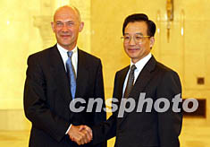 中新社北京六月十三日電 中國總理溫家寶今天在人民大會堂會見了歐盟委員會貿(mào)易委員帕斯卡爾·拉米。