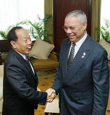 中新網(wǎng)6月18日電 中國(guó)外交部長(zhǎng)李肇星18日在金邊會(huì)見了美國(guó)國(guó)務(wù)卿鮑威爾,雙方就兩國(guó)關(guān)系和共同關(guān)心的其他問題交換了意見。