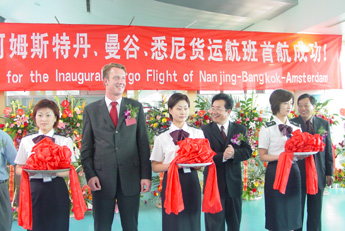 中新網(wǎng)南京6月21日電(鄭建 余翔 記者陳旻)中國內地開放第五航權加速了國際航空運輸進入中國內地市場的競爭。今天傍晚十八點,由荷蘭馬丁航空公司執(zhí)飛的B七四七F二00型貨機,在南京祿口國際機場舉行了簡短的首航儀式后,滿載著以IT電子產品為主的一百噸貨物,由南京途經曼谷直飛阿姆斯特丹。