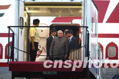 印度總理瓦杰帕伊二十二日乘專機(jī)抵達(dá)北京,開始其為期六天的正式訪華行程,這是近十年來印度總理首次訪問中國。中新社記者:鄭萍萍