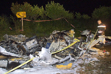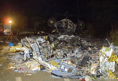 飛機(jī)墜毀后斷成兩截,機(jī)身隨即起火。機(jī)上53歲的飛行員死亡,另一名機(jī)師及兩名乘客受輕傷。