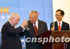 香港特首董建華、財(cái)政司長梁錦松及投資推廣署長盧維思,6月24日在禮賓府特設(shè)酒會,舉杯祝賀來港投資的中外企業(yè)代表在港開業(yè)擴(kuò)充業(yè)務(wù)。 中新社記者 洪少葵