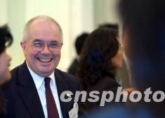 香港財(cái)政司司長梁錦松,6月24日在禮賓府特設(shè)的酒會上,與六家在香港新設(shè)或擴(kuò)充業(yè)務(wù)的海外投資商交談甚歡。 中新社記者 洪少葵