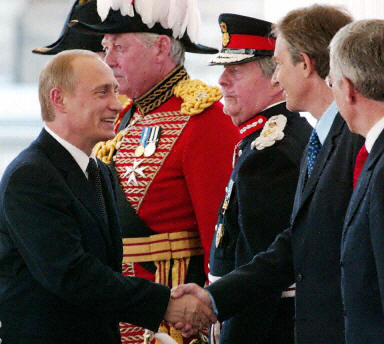 英國(guó)王儲(chǔ)查爾斯親王到希思羅機(jī)場(chǎng)迎接普京和夫人,然后共同驅(qū)車到倫敦市中心與英國(guó)女王和首相會(huì)面。