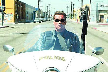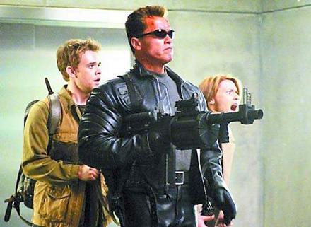 《終結(jié)者3》7月2日上映,這之前有記者采訪了男主角施瓦辛格,見到他時,他正在和他四歲的兒子克里斯多佛在飯桌上玩國際象棋。當(dāng)時施瓦辛格在棋局中處于劣勢,看到我們,他干脆將木質(zhì)棋盤放到一邊,并搬來幾張椅子,還派發(fā)飲料,很開心地接受采訪。在他舒服地坐在凳上的時候,卡其布短褲下膝蓋上的疤痕清晰可見。在整個采訪的過程中,克里斯多佛會不時地爬到他爸爸身上扯他的耳朵,不過施瓦辛格也不在意,繼續(xù)我們的談話,談他拍《終結(jié)者3》的事情。談話中,施瓦辛格說:“我曾說過,我會回來的,現(xiàn)在,我回來了!辈稍L最后,他還強(qiáng)調(diào)“有人說我老了,我會證明給他們看,我像20年前一樣棒!