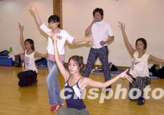 歌星陳慧嫻6月25日在香港為其復(fù)出的個(gè)唱與一眾舞蹈員進(jìn)行舞蹈排練,舞指(男)為她排練舞步,陳慧嫻將于7月4、5日在紅館舉行兩場(chǎng)演唱會(huì)。 中新社記者 鄧慶樂