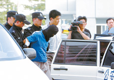 中新網(wǎng)6月26日電 據(jù)新聞晨報(bào)報(bào)道,發(fā)生在上海的“6·23”特大搶劫殺害臺(tái)商案昨天宣布告破,犯罪嫌疑人黃利剛和程亮于昨日凌晨在江蘇睢寧被擒獲,此時(shí)距離案發(fā)僅41小時(shí)。昨天下午3時(shí)10分,帶著頭套的犯罪嫌疑人黃利剛、程亮被押解至上海閔行公安分局。