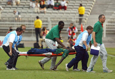 第六屆國際足聯(lián)聯(lián)合會杯足球賽半決賽26日法國的里昂和巴黎舉行。喀麥隆隊(duì)擊敗哥倫比亞隊(duì),法國隊(duì)淘汰土耳其隊(duì),均躋身決賽。但不幸的是,喀麥隆隊(duì)的著名球星維維安·福在比賽過程中猝死。