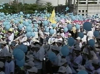 據(jù)臺灣媒體報(bào)道,臺電員工及眷屬等3000人,27日上午浩浩蕩蕩齊聚世貿(mào)大樓前,向參加“非核家園大會”的陳水扁表達(dá)抗議。而陳水扁則已在上午公開宣示將在明年3月20日或之前舉辦“核四”等重大議題的所謂“公投”。