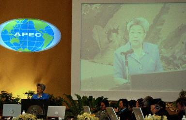 中國(guó)副總理兼衛(wèi)生部長(zhǎng)吳儀28日出席了APEC衛(wèi)生部長(zhǎng)會(huì)議并作演講。吳儀是于昨日下午抵達(dá)泰國(guó)的,泰國(guó)總理他信在總理府會(huì)見(jiàn)了她。