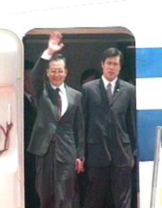 中新網(wǎng)6月29日電 中國(guó)國(guó)務(wù)院總理溫家寶今天11:50時(shí)許乘專機(jī)抵達(dá)香港國(guó)際機(jī)場(chǎng)。香港特區(qū)行政長(zhǎng)官董建華等到機(jī)場(chǎng)迎接。