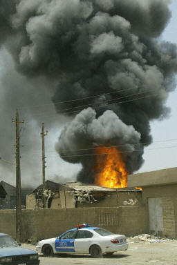 伊拉克首都巴格達(dá)市中心一個(gè)倉庫6月28日發(fā)生火災(zāi)。兩名伊拉克人在火災(zāi)現(xiàn)場(chǎng)被逮捕。