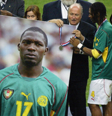 在26日的半決賽中,喀麥隆隊中場球員馬克-維維安·福曾因為心臟病突發(fā)而在與哥倫比亞隊的比賽中猝死。開賽前,雙方隊員臂帶黑紗為這名不幸的喀麥隆選手默哀一分鐘。