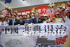 今年春天,北京突發(fā)“非典”疫情,首都旅游及相關(guān)產(chǎn)業(yè)遭受到了災(zāi)難性的打擊,來京的海外游客數(shù)量大幅下降,經(jīng)濟(jì)損失十分嚴(yán)重。為了盡快復(fù)蘇旅游市場,北京市旅游局制定了一系列救市措施,其中就包括今天的第一團(tuán)歡迎儀式。