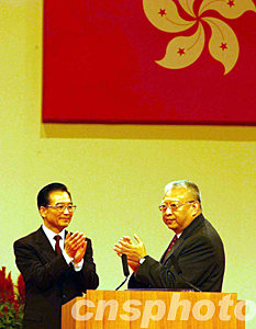 溫家寶說∶今天是香港回歸祖國六周年的喜慶日子。在香港萬眾一心戰(zhàn)勝SARS、奮力重振經(jīng)濟的重要時刻,我代表中央政府和全國各族人民,向香港特別行政區(qū)政府、香港同胞和各界人士表示熱烈祝賀和良好祝愿。