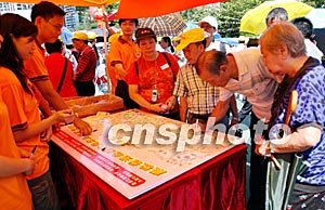 香港慶;貧w六周年在維園舉辦大型慶祝活動,吸引眾多市民參與。圖為市民在留言板上簽名紀念。洪少葵 攝