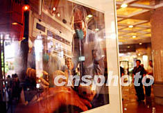 香港一家購物商場展出醫(yī)護人員醫(yī)治SARS病人的照片,提醒市民不可掉以輕心,預(yù)防病毒死灰復(fù)燃。洪少葵 攝