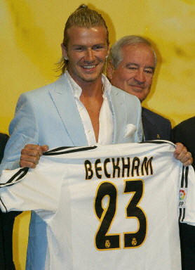 在西班牙甲級(jí)足球聯(lián)賽中,披上23號(hào)球衣的名將不少,其中一位就是其“仇敵”、拉科魯尼亞的杜舍爾(Aldo Duscher)。這名阿根廷球員在去年的一場歐洲冠軍聯(lián)賽中,將貝克漢姆絆倒,導(dǎo)致他跖骨折斷,必須休養(yǎng)三個(gè)月,害他差點(diǎn)就無法參加世界杯賽。