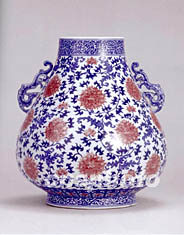 多件明清皇帝珍愛(ài)的瓷器將于七月中旬在北京華辰春季拍賣會(huì)上亮相。圖為尚無(wú)公開(kāi)估價(jià)的清雍正青花釉里紅纏枝蓮紋螭耳尊,因工藝極難而珍罕,目前僅北京故宮舊藏一件。中新社記者 賈國(guó)榮 攝