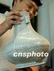 多件明清皇帝珍愛(ài)的瓷器將于七月中旬在北京華辰春季拍賣會(huì)上亮相。清代雍正和乾隆兩帝酷愛(ài)宋瓷而仿哥釉六方貫耳瓶,首次向國(guó)內(nèi)外公私收藏界展現(xiàn),估價(jià)八十萬(wàn)元人幣。中新社記者 賈國(guó)榮 攝