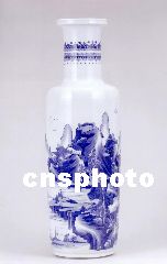 圖為清康熙青花山水人物圖大棒槌瓶,是難能可貴的大器,估價(jià)五十萬(wàn)元人民幣。中新社圖