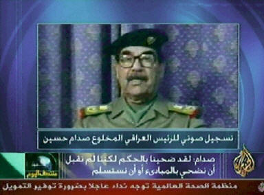 據(jù)法新社報(bào)道,卡塔爾半島電視臺4日播放了一盤錄音帶,半島臺聲稱這盤錄音帶是薩達(dá)姆于6月14日錄制的。