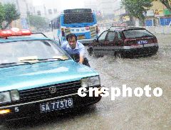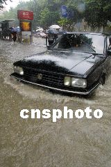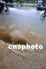 今天早晨可以看到,南京城區(qū)幾乎所有路面都有積水,不少地段水深超過半個自行車輪子,下關(guān)一些街道的積水甚至深達(dá)一米多,公交及出租車在水中緩慢移動著,路邊隨處可見排氣管進水拋錨的車輛。在新街口至中央路一線,多處路段水深過膝,不少趕時間的市民們艱難地涉水前行。