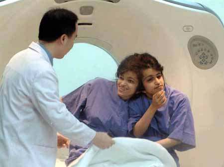 伊朗姐妹接受腦部CT檢查時的情景