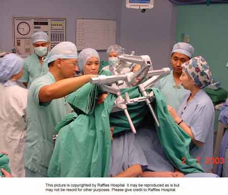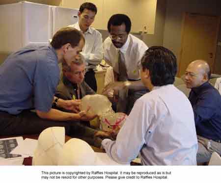 7月2日,新加坡主刀醫(yī)生在手術(shù)室演練手術(shù)的情景