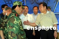 中新網(wǎng)7月6日電 昨天(5日)下午3時30分,中國國務(wù)院副總理回良玉趕赴淮河安徽臨水鎮(zhèn)陳村險段,在淮河抗洪防汛一線鼓舞士氣。