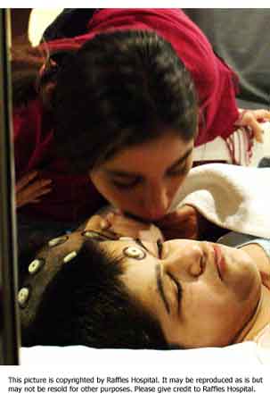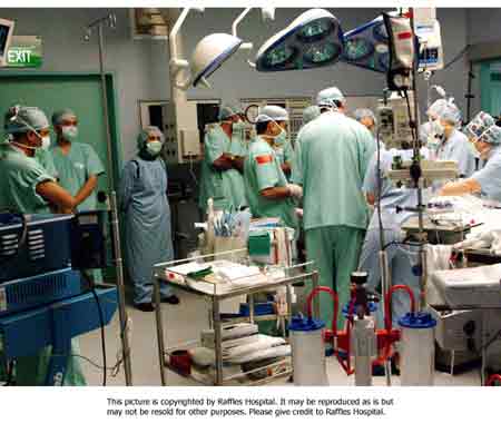 中新網(wǎng)7月6日電 新加坡萊佛士醫(yī)院新聞發(fā)布室7月6日消息,今天是伊朗連體姐妹“分首”手術(shù)的第一天,手術(shù)的現(xiàn)場情景如下:圖一是手術(shù)室里醫(yī)院們正在為姐妹做手術(shù);圖二為進行手術(shù)前熱情的伊朗人為姐妹祝福;圖三為手術(shù)室忙碌的情景。(徐冰川/聞新芳)